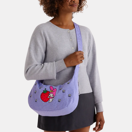 Embroidered My Melody Strawberry Medium Nylon Crescent Bag