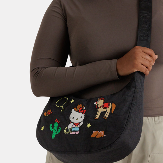 Embroidered Hello Kitty Western Medium Nylon Crescent Bag