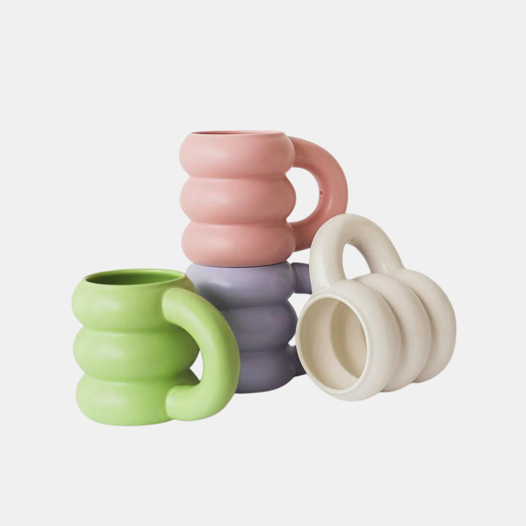 These ceramic mugs with oversized handles are a statement piece for your drinkware collection.