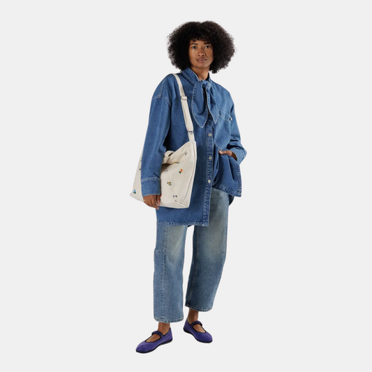 Embroidered Ditsy Floral Horizontal Duck Tote