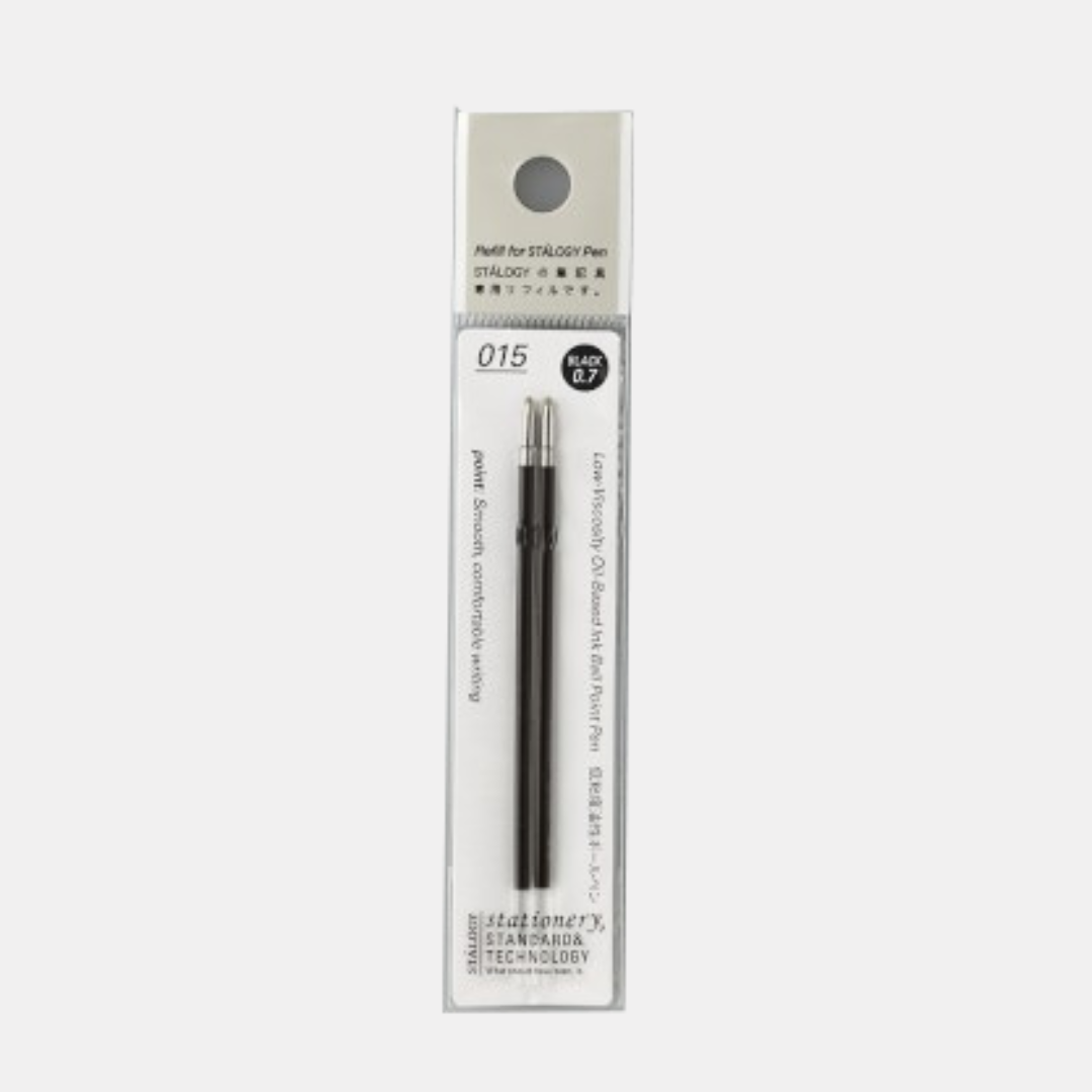 This pack of 2 black ink refills is compatible with Stalogy's 015 Low Viscosity Oil-based Ink Ballpoint Pen.
