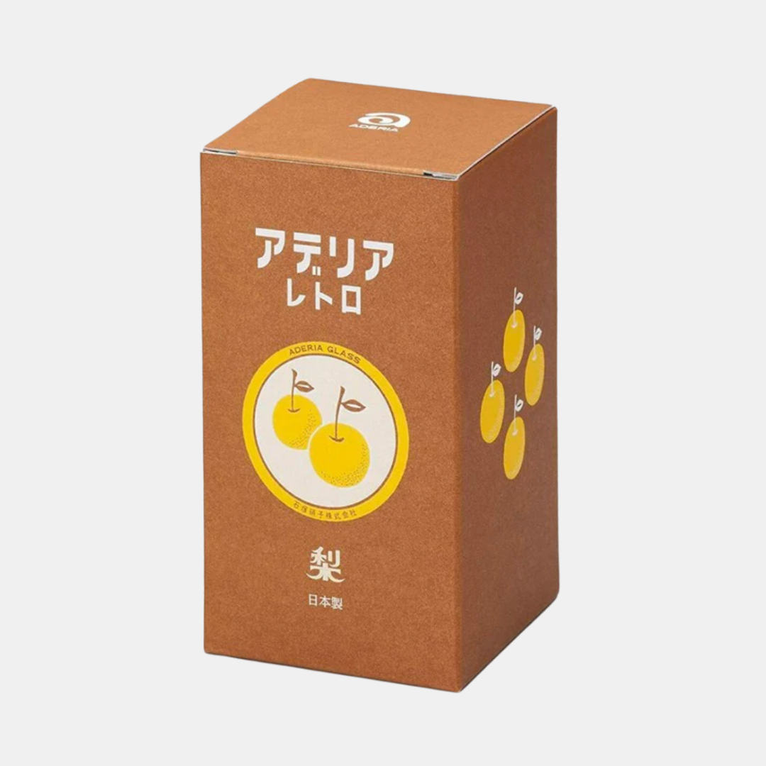 Aderia Retro glassware brings back the warm, nostalgic charm of the Japanese Showa period. Handmade in Japan, this glass features a retro fruit design originally released in the 1970's. Each glass comes packaged in a branded box, ideal for gifting or collecting.