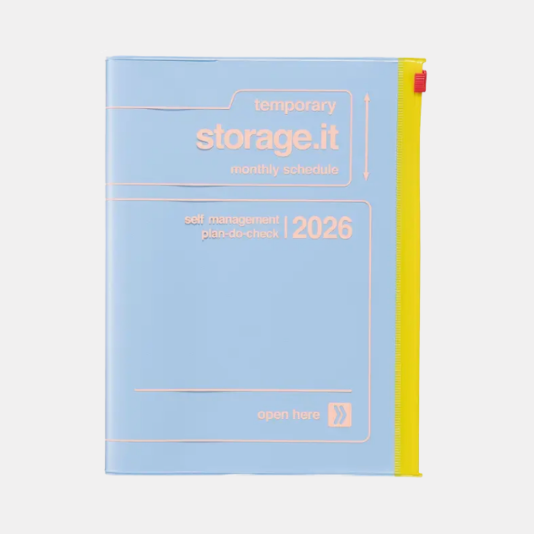A dated monthly planner with grid pages that comes with a translucent PVC Storage.It zipper cover. Slip pens, notes, or small essentials into the zip pouch, and swap in fresh inserts year after year to keep the cover in use.