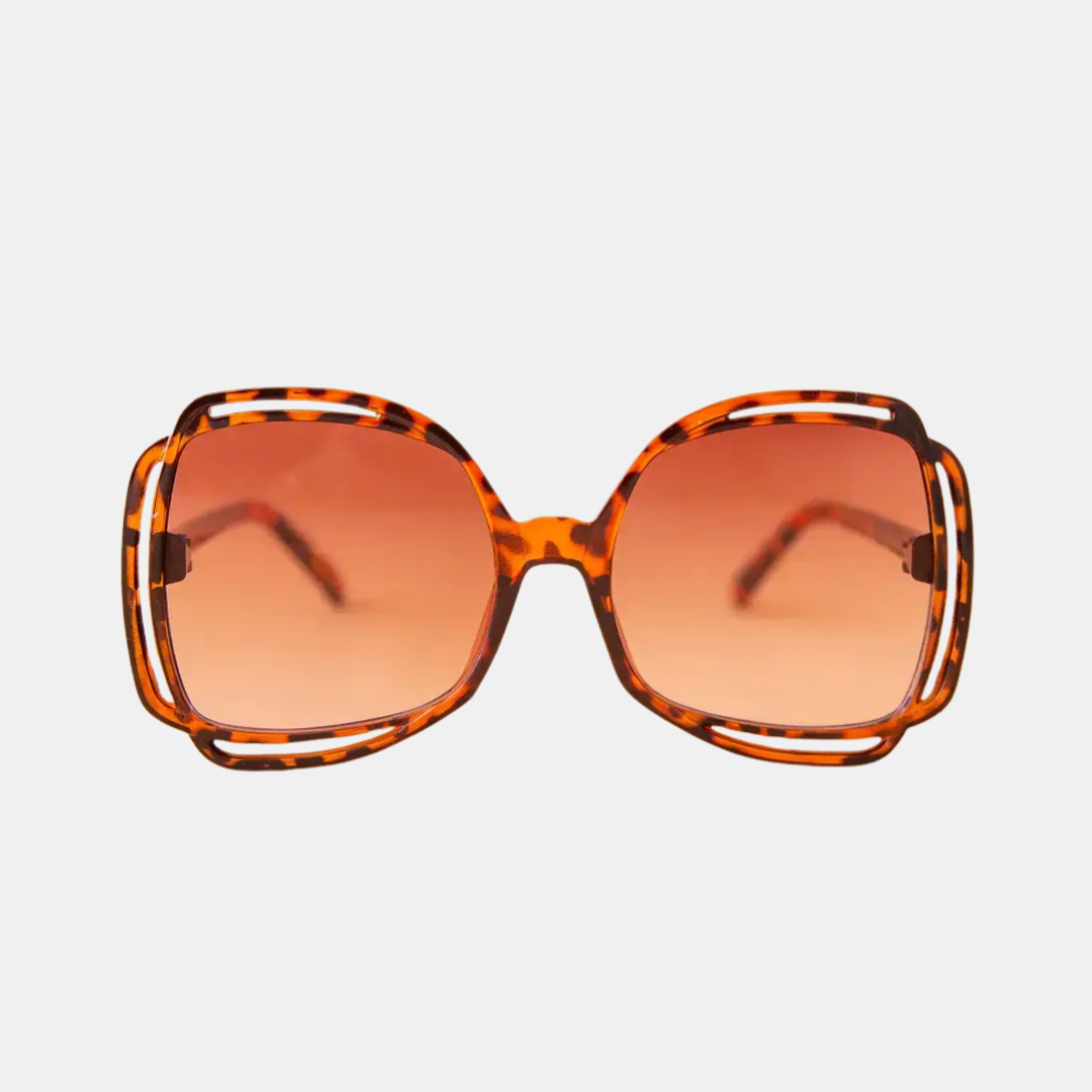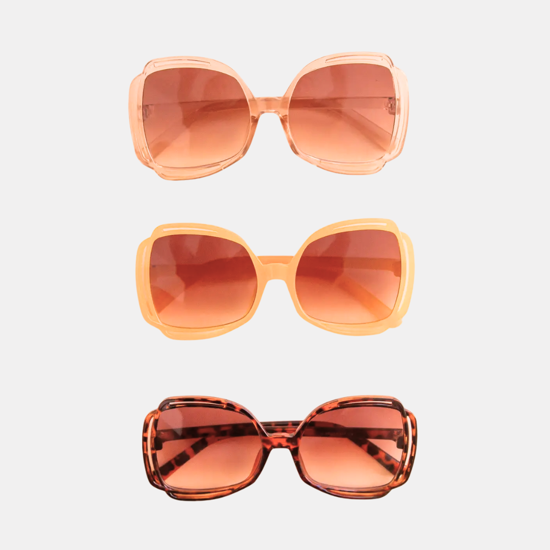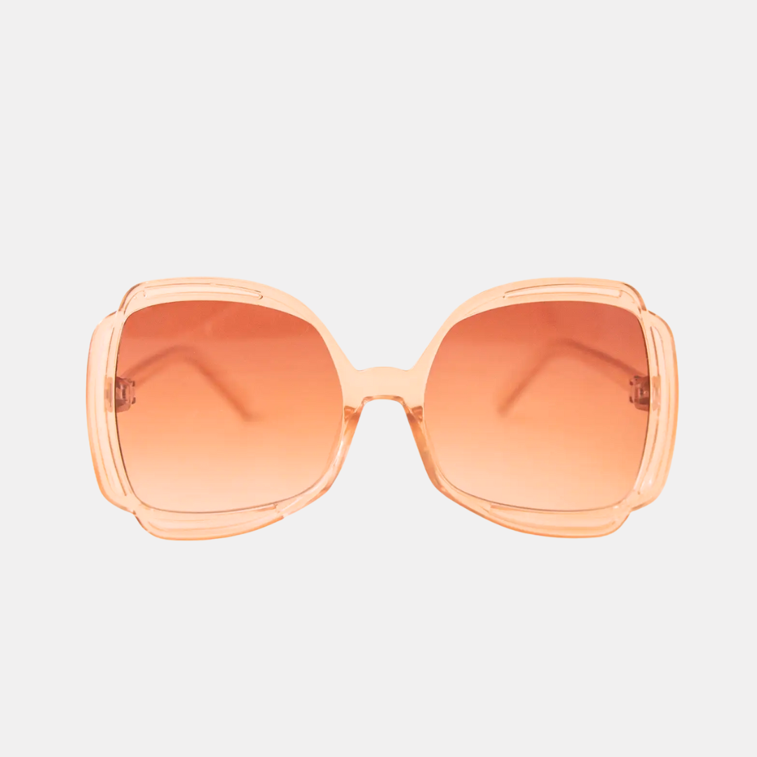 Bring some groovy vibes to your style with these sunglasses! These adorable shades feature a playful clear, tan frame and a peachy gradient lens, making them a fun and statement-making addition to any outfit.
