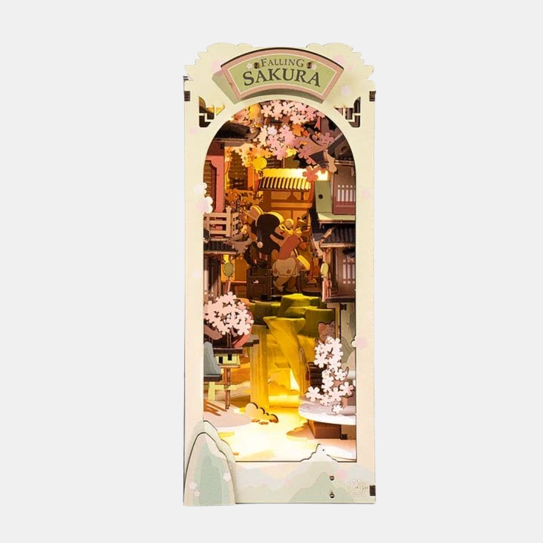 This miniature building kit will keep you busy as you design and create an intricate Japanese town scene. It's designed to fit on a bookshelf, adding a whimsical touch to your shelf. It features sakura blossoms, ornate buildings, a waterfall, and a real LED light to give you a highly detailed space. This kit includes everything that you need to start building this townscape.