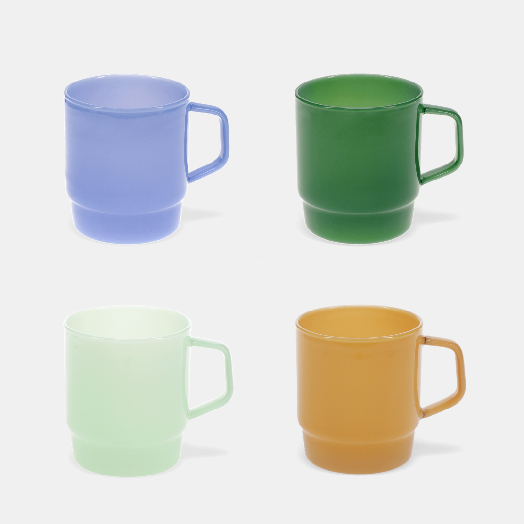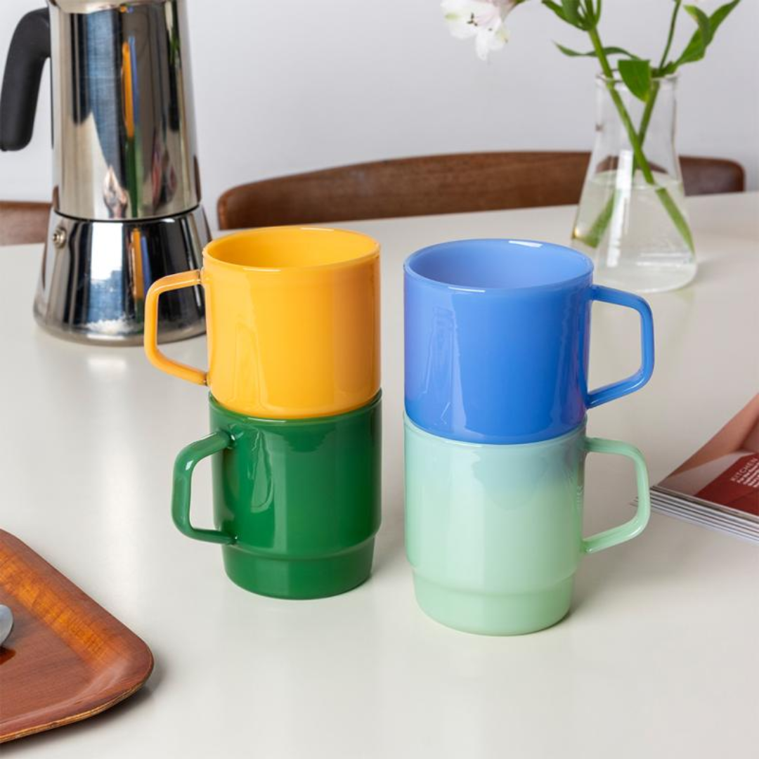 Enjoy your morning coffee in style with these milky glass coffee cups. Designed so that multiple mugs can be neatly stacked away in the cupboard, it’s perfect for saving space while adding a modern touch to your kitchen.