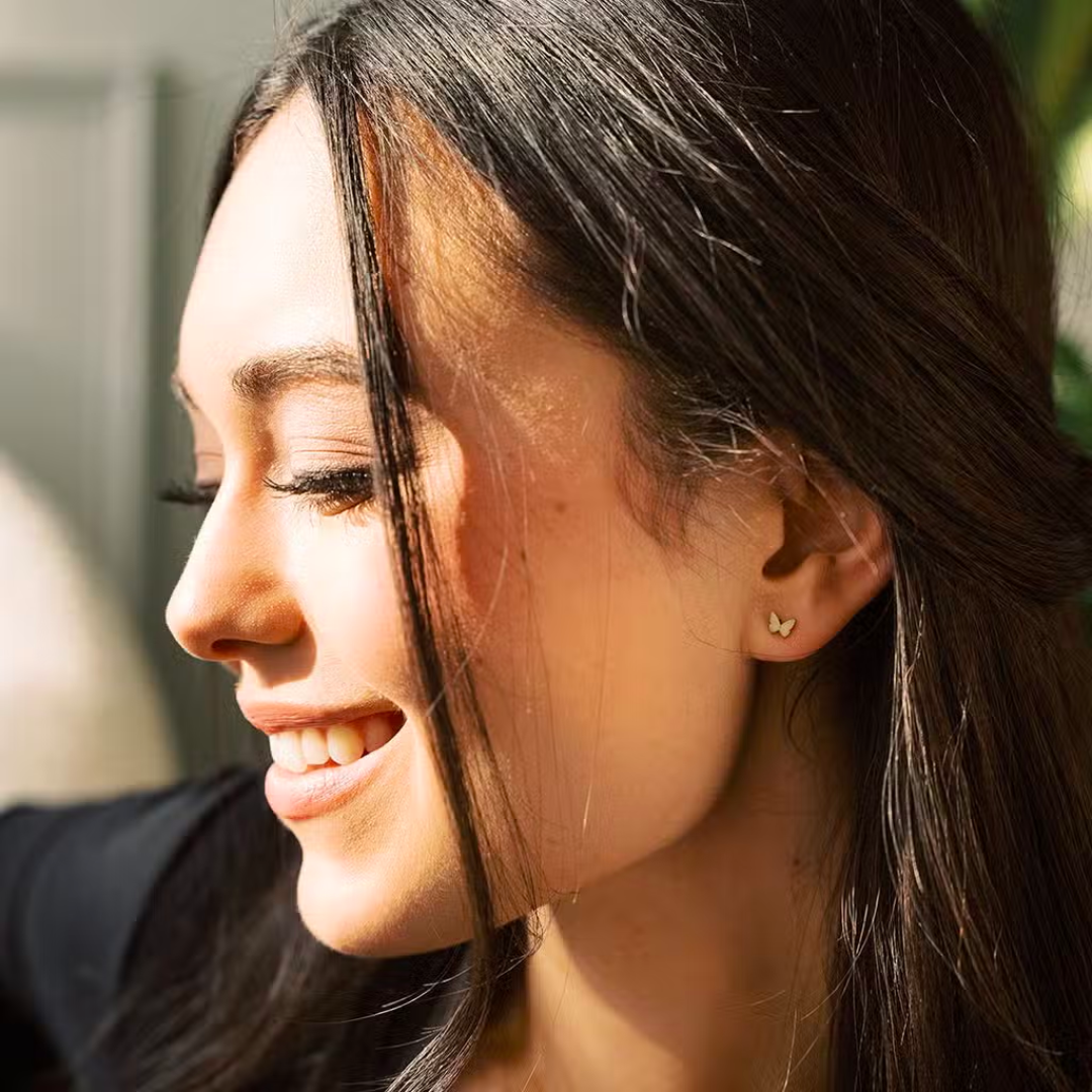 Dainty butterfly studs in a minimal, effortless silhouette.