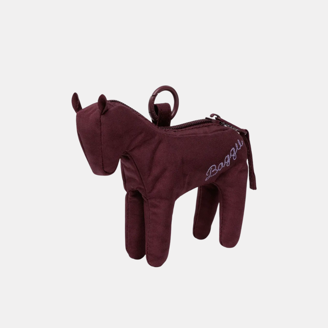 A horse-shaped bag charm to accessorize larger bags and keep small items like lip balm or change within reach. Complete with a metal keyring clip and embroidered logo.