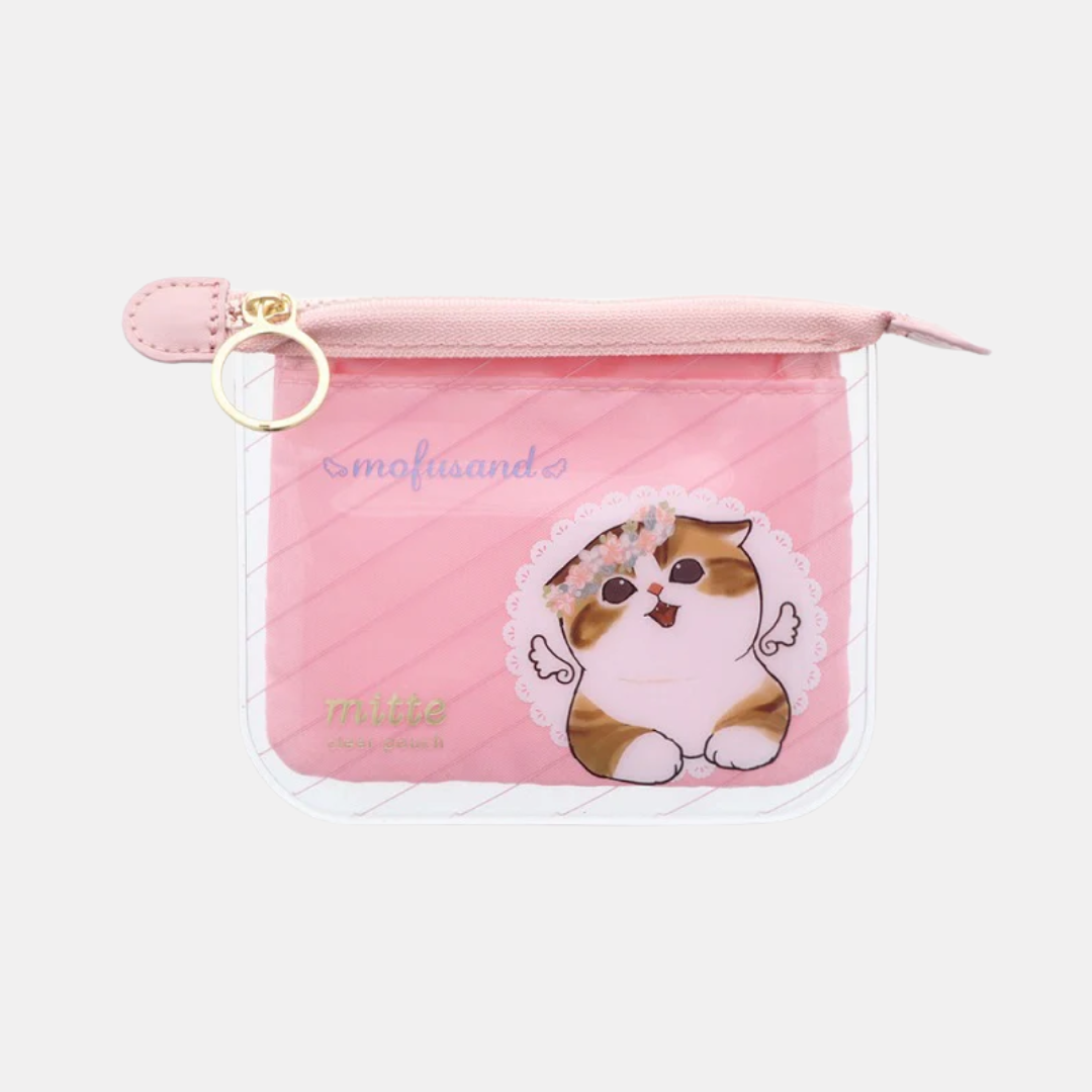 This super cute mini flat pouch showcases a print of an angelic Mofusand kitten! Use it to store your trinkets and charms. It has an inner pocket and outer pocket that you can use to display things.