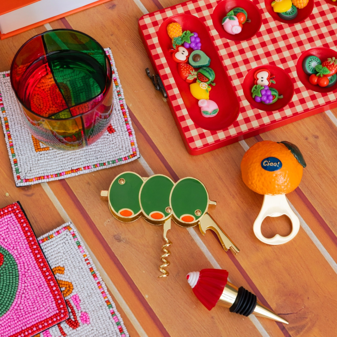 You’ll want to keep this one out of the drawer and on display 24/7. This corkscrew and bottle opener features a fun stacked olive design.