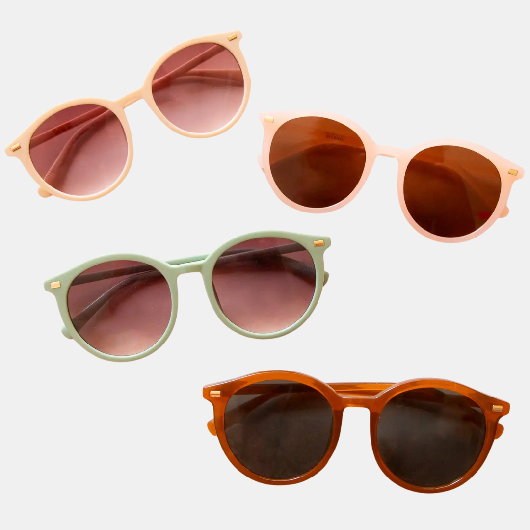 Shade your eyes from the sunshine and look cute doing it! These sunglasses have a rounded shape and feature a coloured frame to make the perfect accessory for any style.