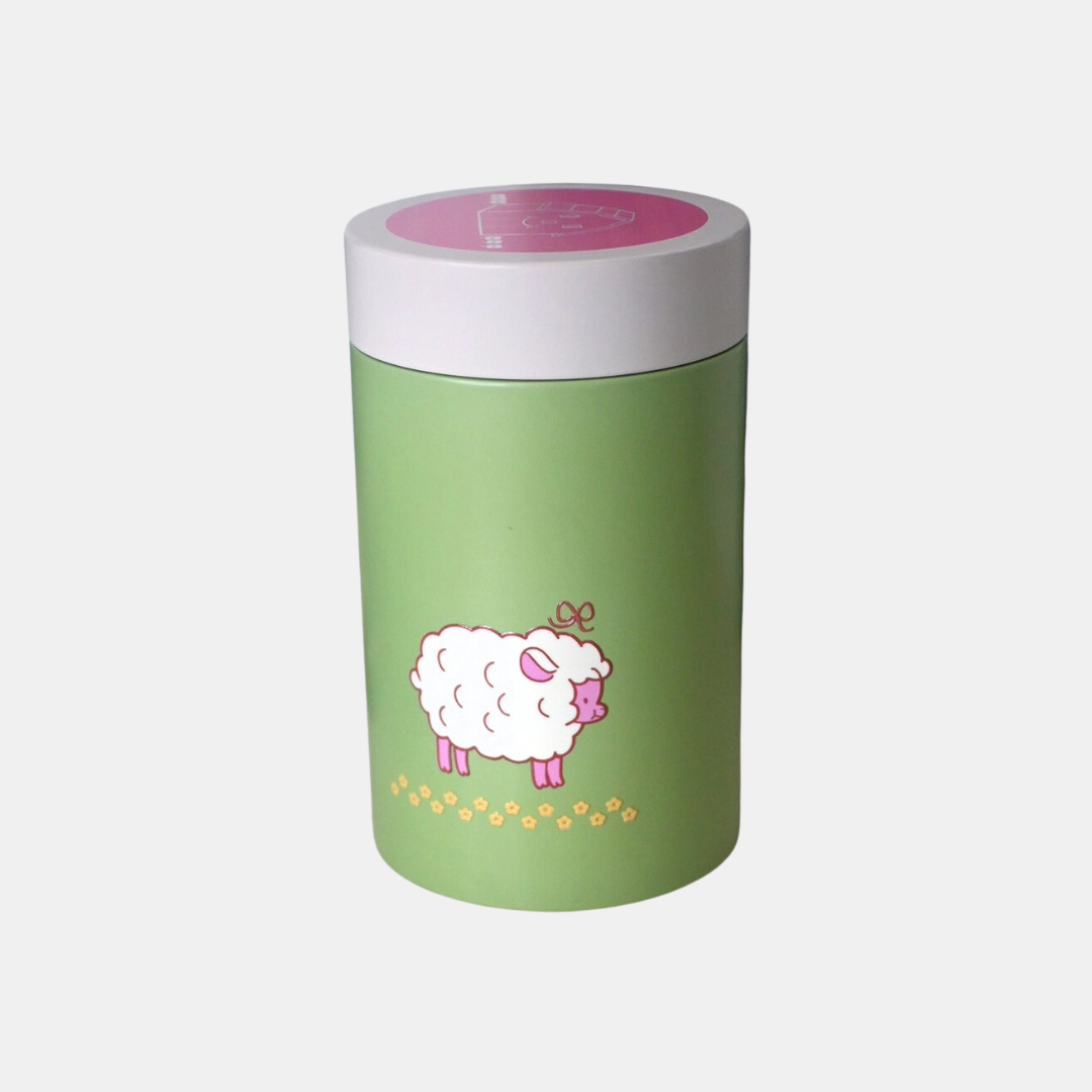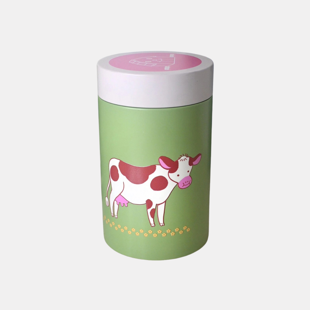 Store your coffee, tea, or trinkets! This tin canister features a double sided farm themed design - one side has a sheep and one side has a cow.