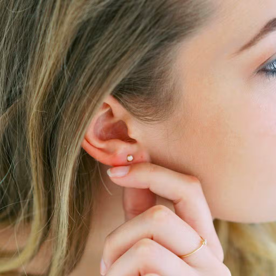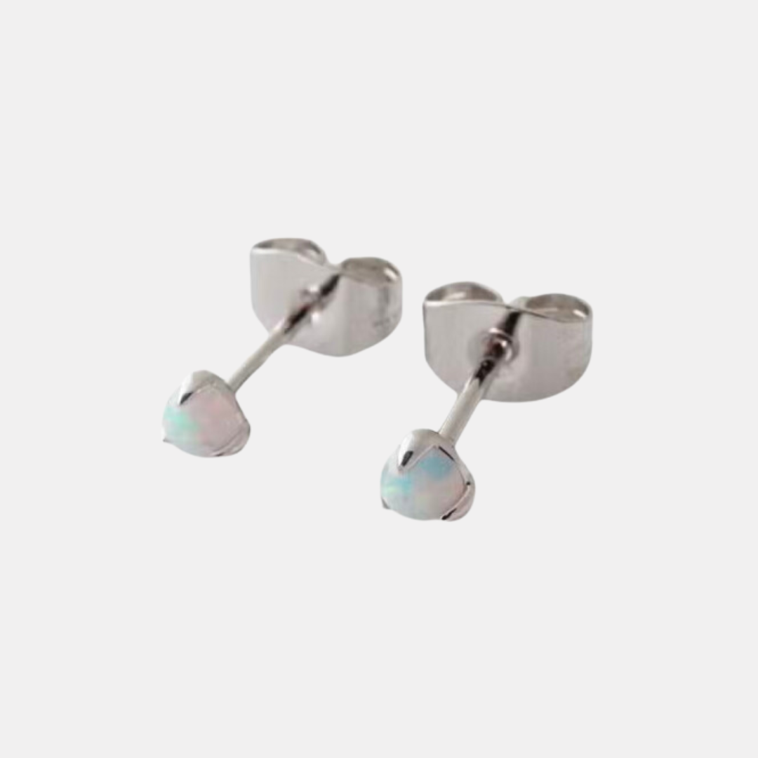 A pair of delicately set, tiny opal crystal stud earrings. Gorgeous when worn alone or alongside your favourite studs. Opal is a beautiful gemstone with a subtle metallic rainbow-like colour. It's known to inspire love, hope, luck, and happiness in one's life.