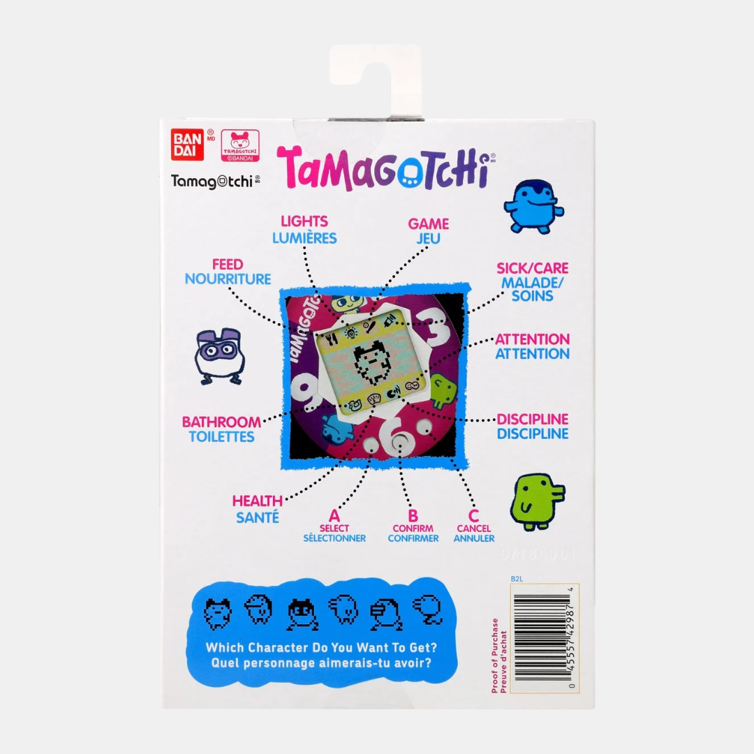 The original digital pet you love is back with the original colours just like how you remembered them in 1997 along with updated colourways. The Tamagotchi Original features original programming: you feed it, clean up after it, take care of it, and even discipline it if it's bothering you when it doesn't need you! Plus, you can play the Character game! How you take care of your Tamagotchi and how you do in the game, decides which adult Tamagotchi you'll get! Plus, it attaches to your bag so it can go everywhere with you!