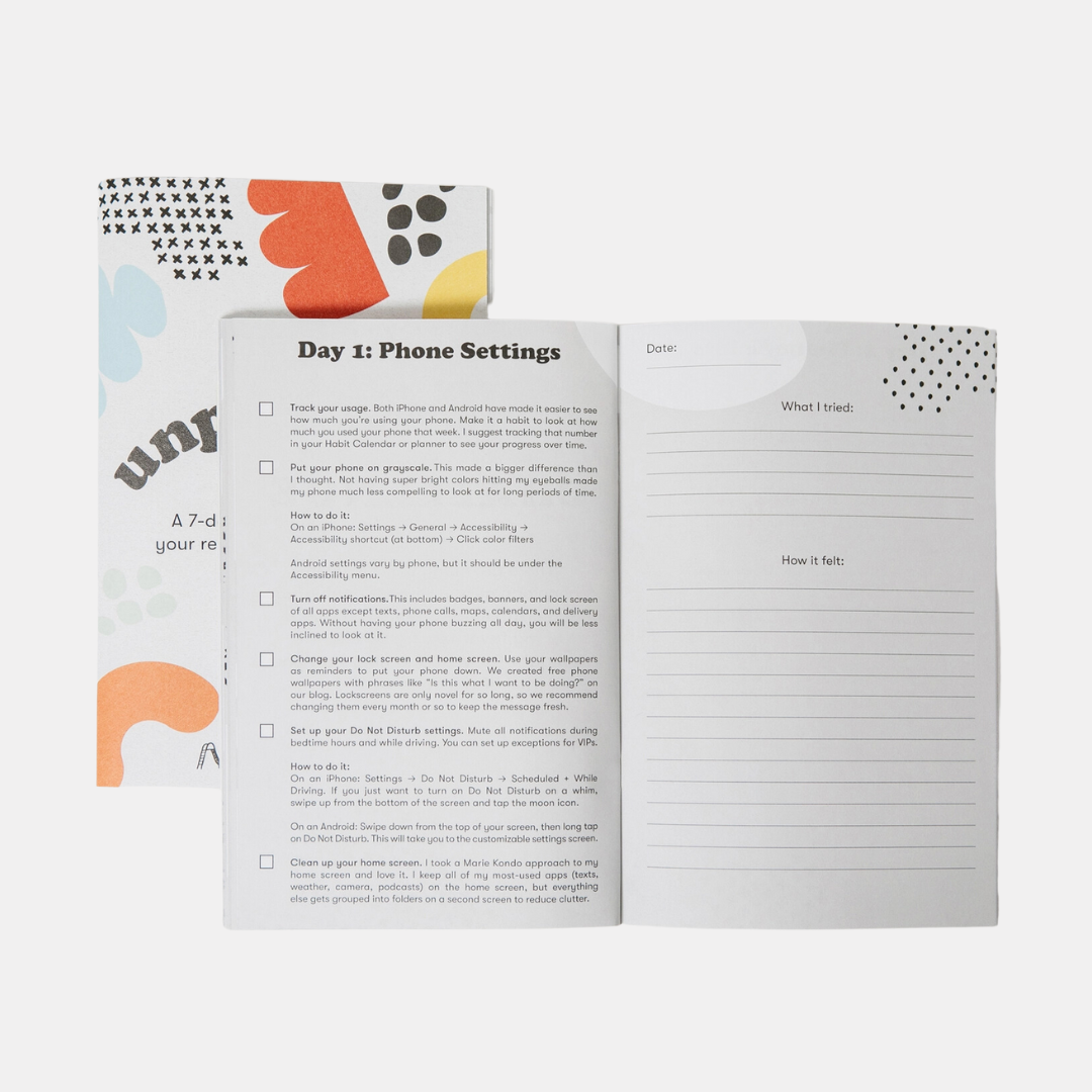 If you've ever looked at your Screen Time report in horror, this guided workbook is for you. Unplugged is a short and approachable guide to decluttering your digital life so you can get back to living an intentional, mindful life. Reflect on your relationship with you phone through interactive journal prompts, brainstorm what you would rather do instead of being on social media, press reset on your relationship with screens through a 7-day digital detox challenge that covers app, internet, email, and cell phone settings, as well as your daily habits around your phone use. Improve your mental health, reduce your stress levels, practice self-care, and reclaim your attention, with Unplugged.