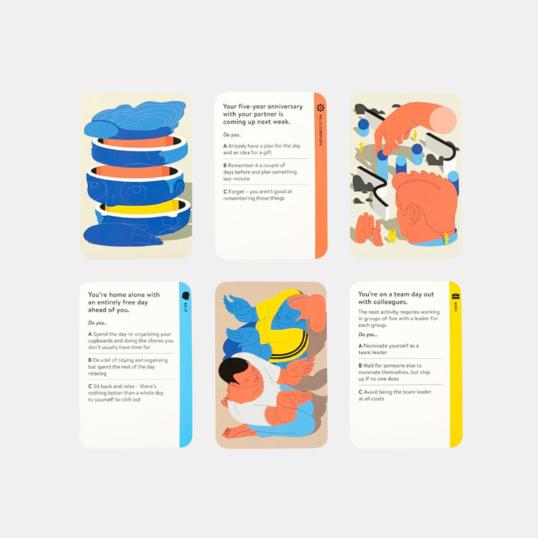 How do we define our personalities? Can they change over time? And what even is a personality anyway? Based in the fascinating science of personality, this interactive game of multiple choice provides playful insight into how (and why) our day-to-day choices define who we are. Whether you play alone, with friends, or at work, you'll get to know yourself and those around you like never before.