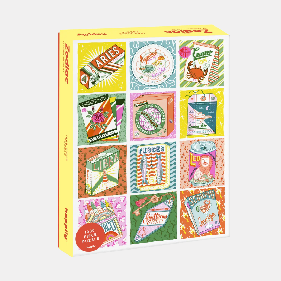 This puzzle features a collection of zodiac illustrations by Jacqueline Colley.